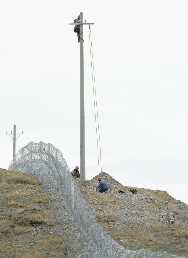 由于阿吾斯奇風(fēng)大和天氣寒冷,堅守在施工一線(xiàn)的技術(shù)人員有的穿著(zhù)棉大衣、有的穿著(zhù)沖鋒衣、有的穿著(zhù)保暖服,個(gè)個(gè)顯得特別臃腫。