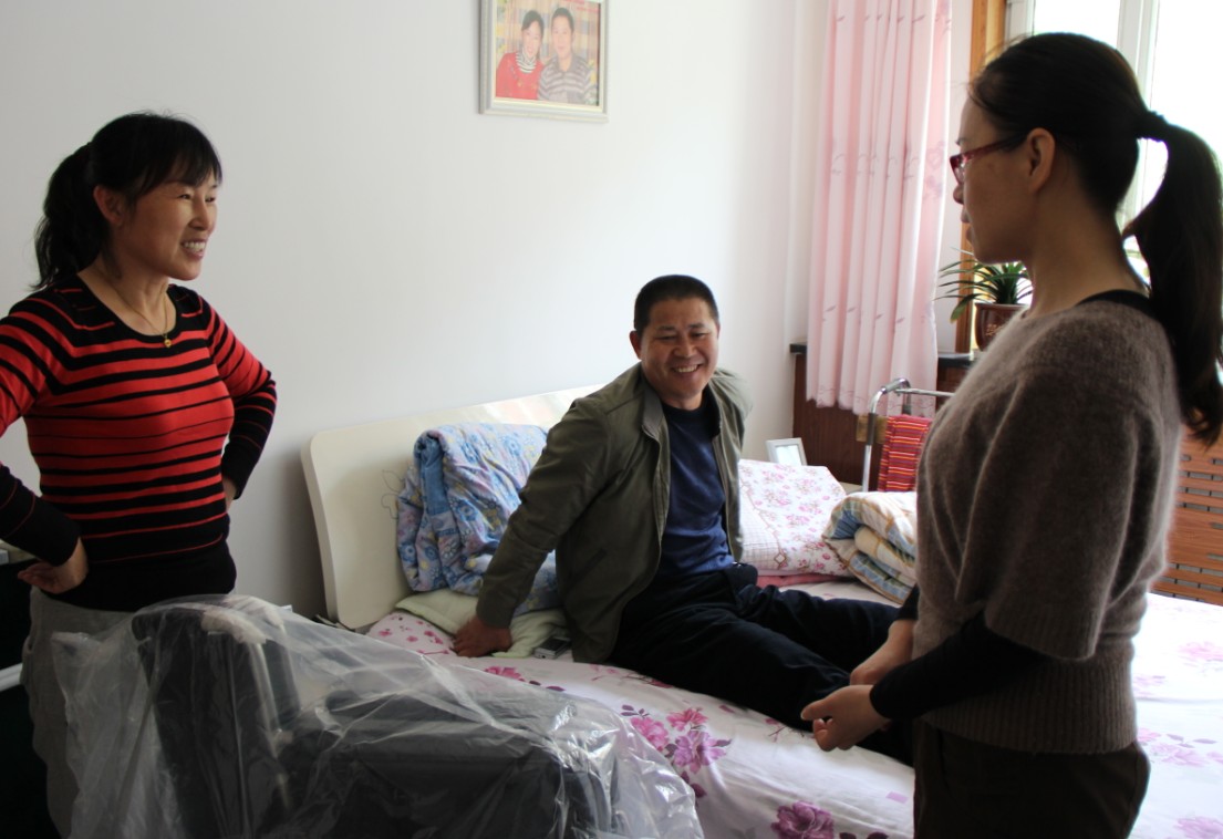 為了給殘疾人提供更多的生活便利,使他們走出家門(mén),更加廣泛的參與社會(huì )生活,在第23個(gè)“全國助殘日”來(lái)臨之際,北方集團工會(huì )辦公室主任吳愛(ài)江攜工會(huì )辦工作人員一行來(lái)到肢體重度殘疾的楚榮貴家中,為他送去了愛(ài)心輪椅。楚榮貴42歲,在一次意外事故中造成高位截癱,是重度肢體殘疾人,家庭生活困難,平日的生活起居完全依靠愛(ài)人一人料理。這次,工會(huì )工作人員把輪椅送到了他家,他坐在嶄新的輪椅上時(shí)感動(dòng)地說(shuō):“感謝公司領(lǐng)導為我送來(lái)的輪椅,感謝黨和公司領(lǐng)導對我們弱勢群體的關(guān)心和愛(ài)護,我今后可以出去曬曬太陽(yáng)了”。