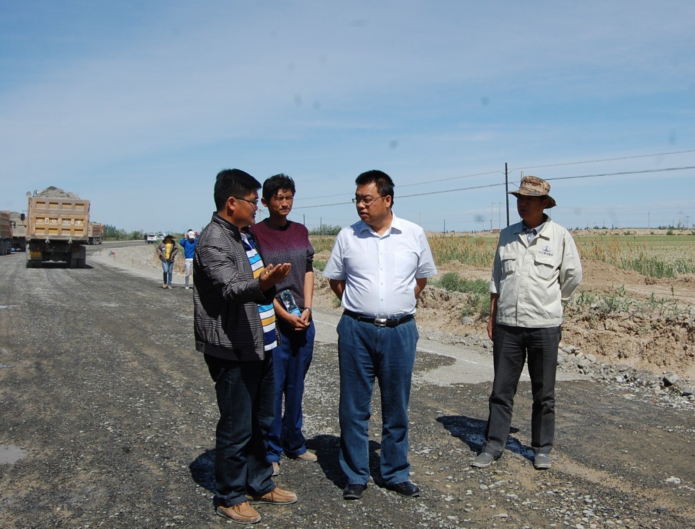 圖為集團公司總經(jīng)理丁總在奎車(chē)公路施工一線(xiàn)指導工作